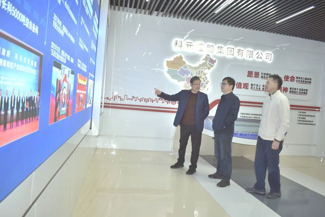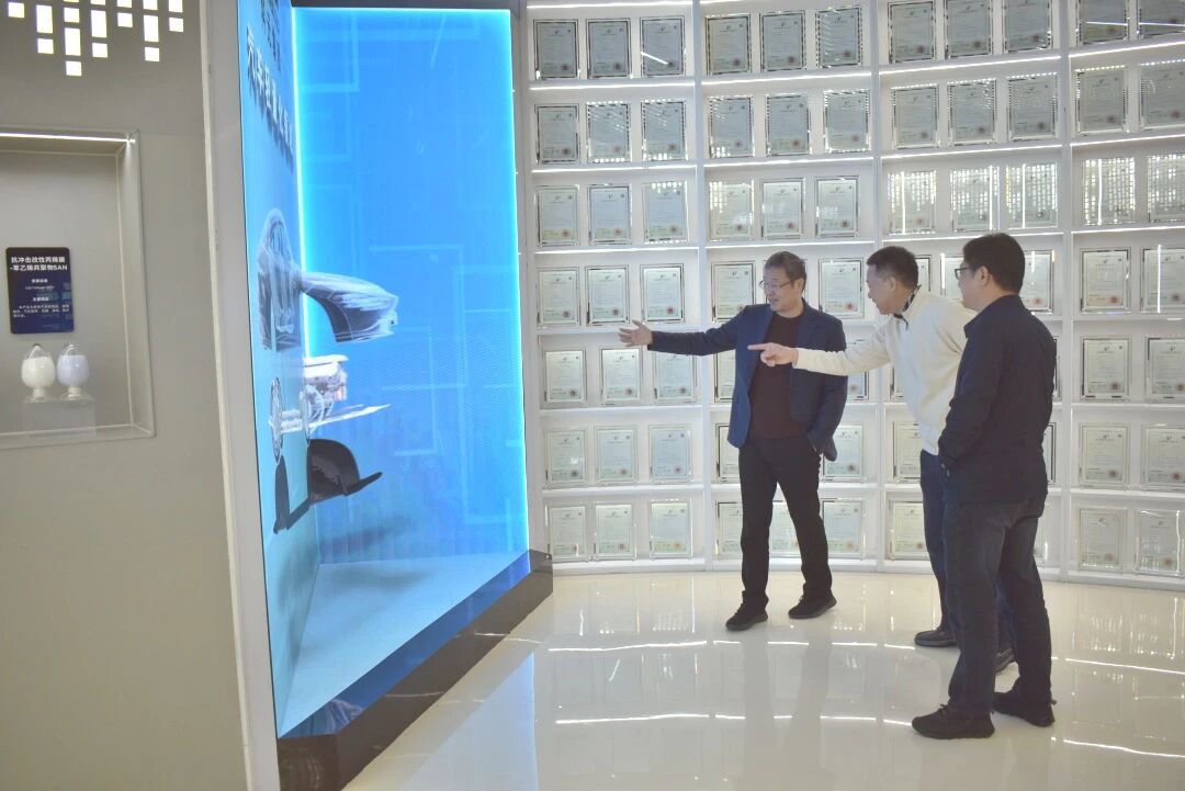 走访期间,商肖城部长一行首先来到集团综合展厅,认真观看企业发展历程、产业布局、科技创新成果与重点项目展示,全面了解集团在绿色化工、高端新材料等领域的战略布局与发展成效。