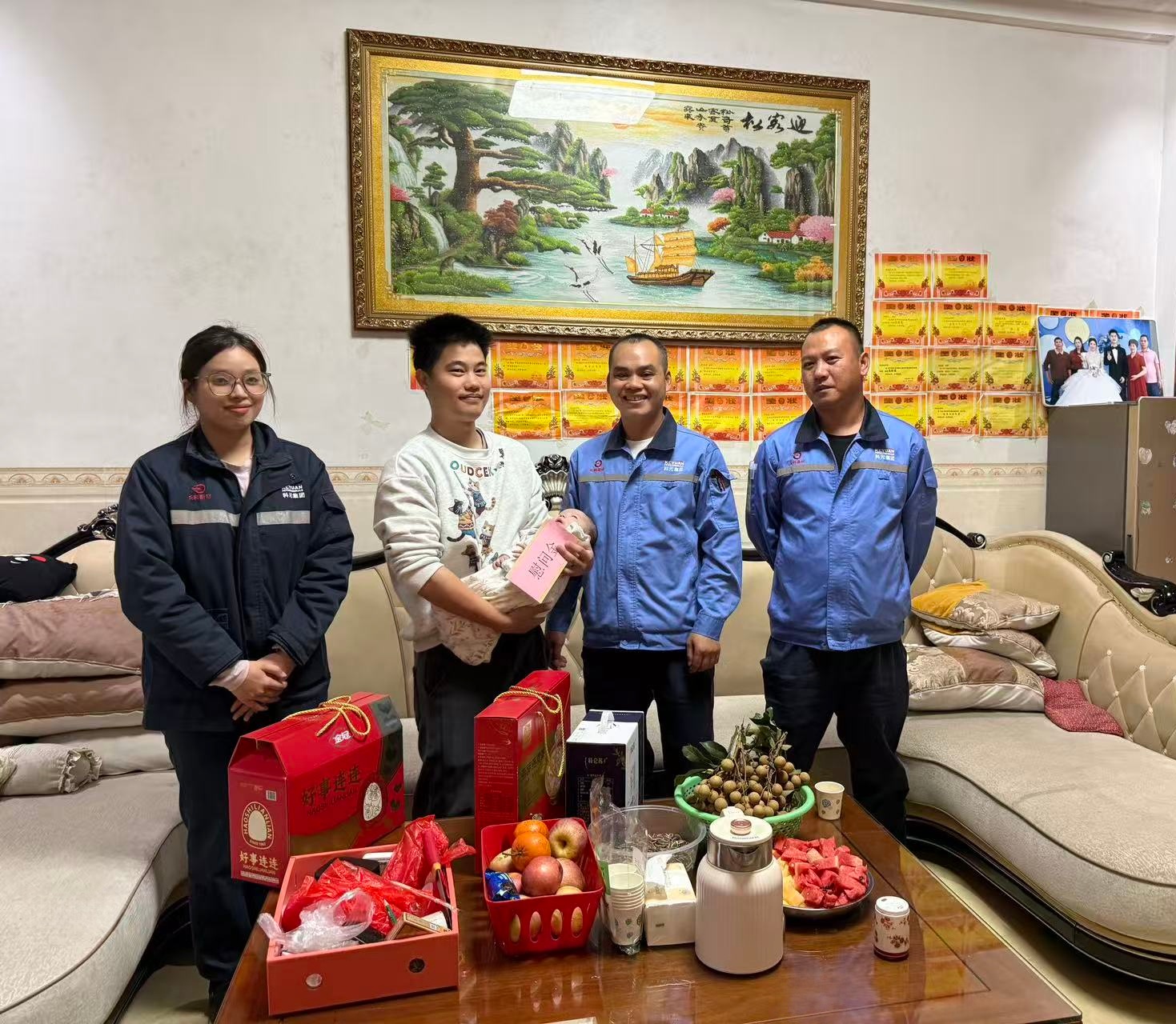 在员工家中,慰问组一行详细询问了产妇身体恢复和宝宝喂养情况,转达了公司领导的关心与祝贺,送上精心准备的慰问品和慰问金,并叮嘱家属安心休养、保重身体。